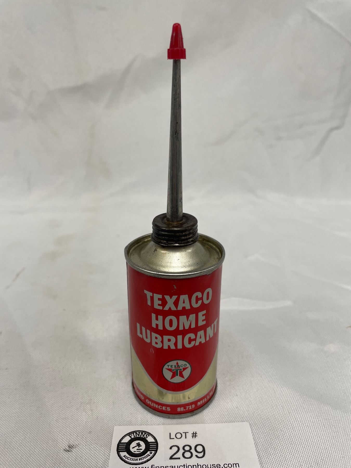 Circa 1966 3 Ounce Round Texaco Home Lubricant Tin Long Spout