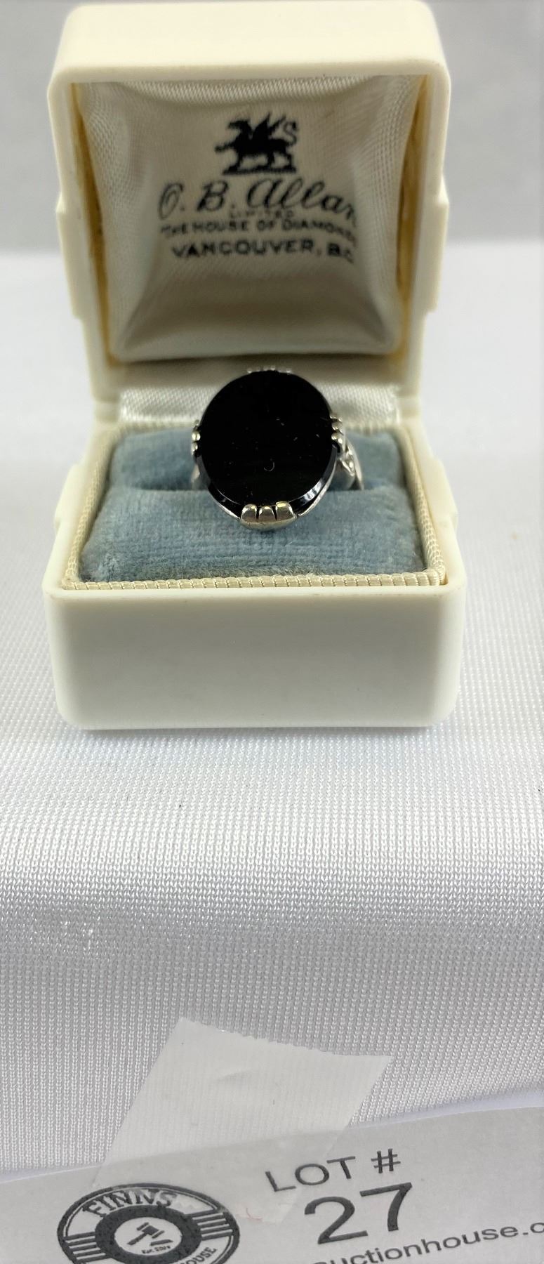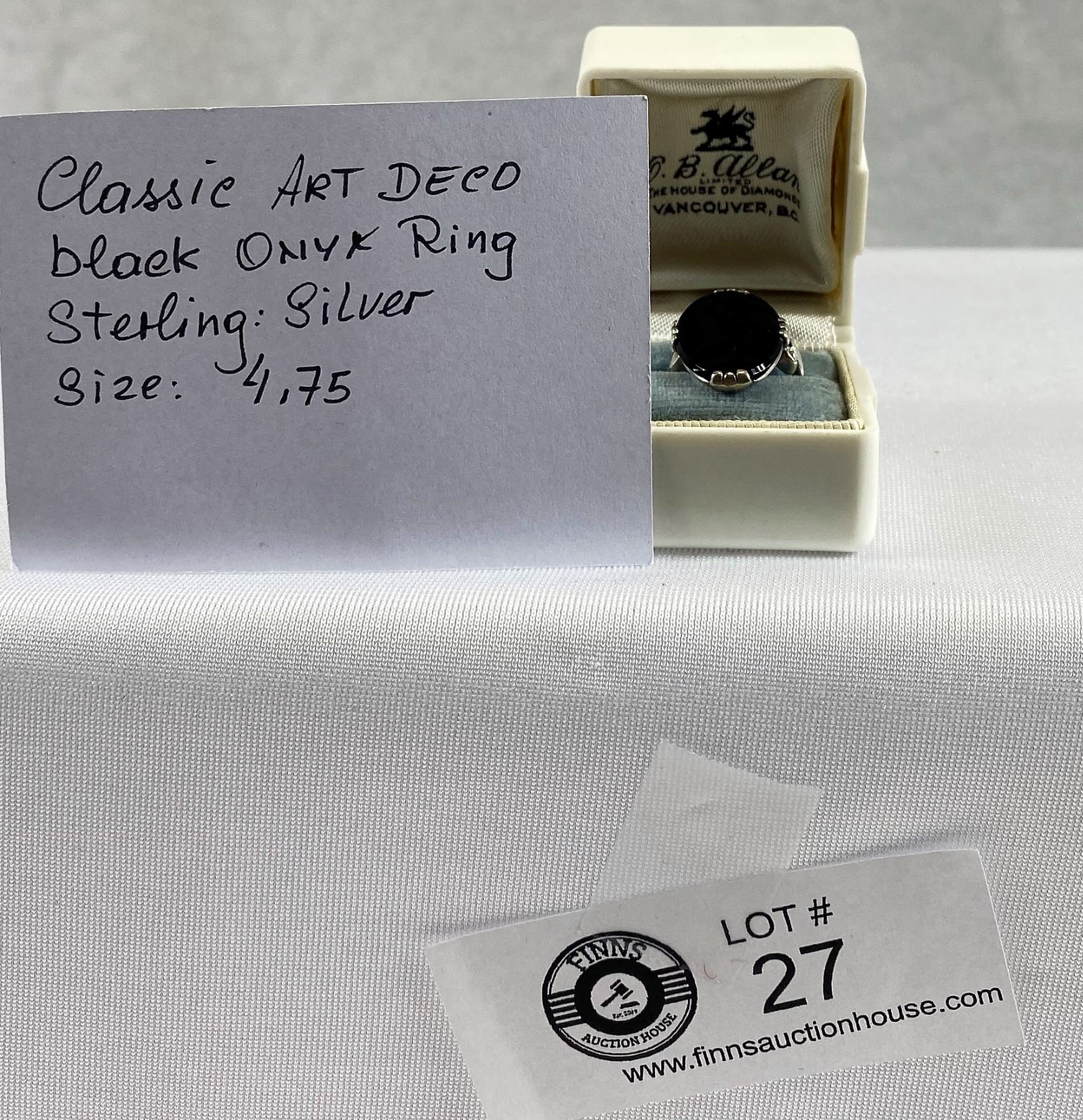 Classic Art deco black onyx ring Sterling Silver size: 4.75
