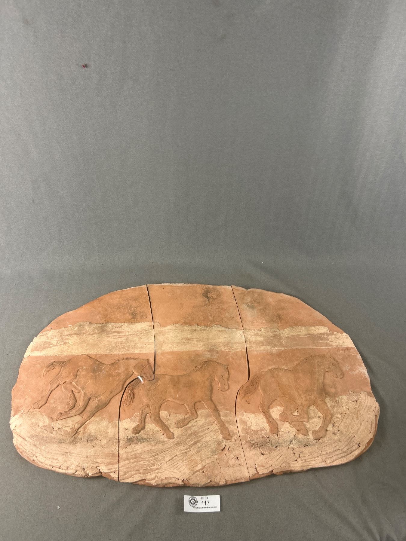 Clay Art Piece Of Wild Horses Running. NO SHIPPING 30.5" x 18"