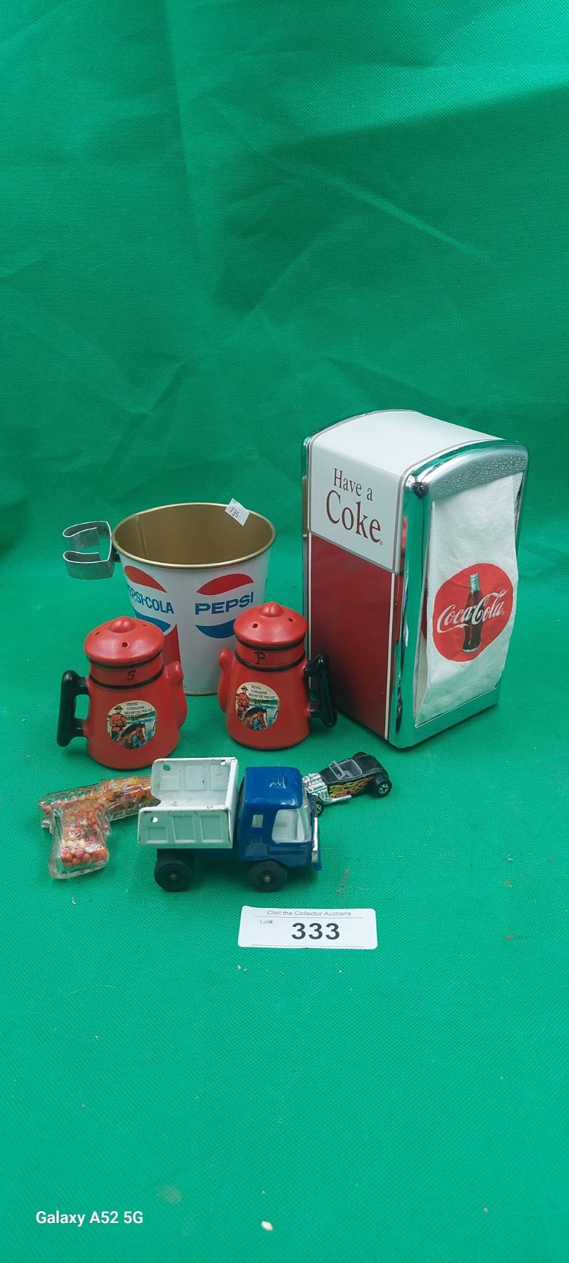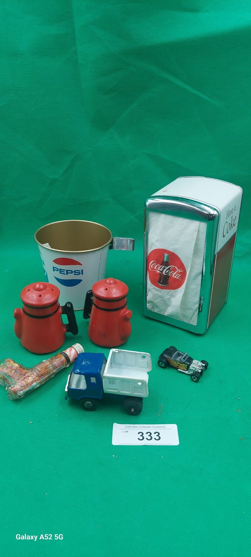 Coca-Cola collectibles inc diner napkin stand, S&P shakers etc