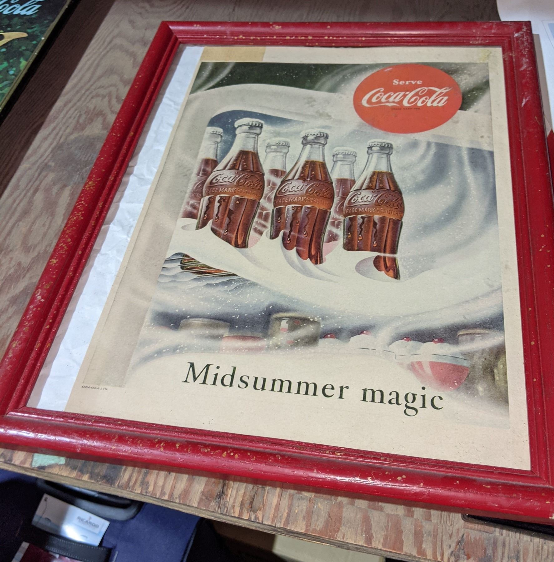 Coca-Cola poster board limited edition paragraph and framed magazine advertisement
