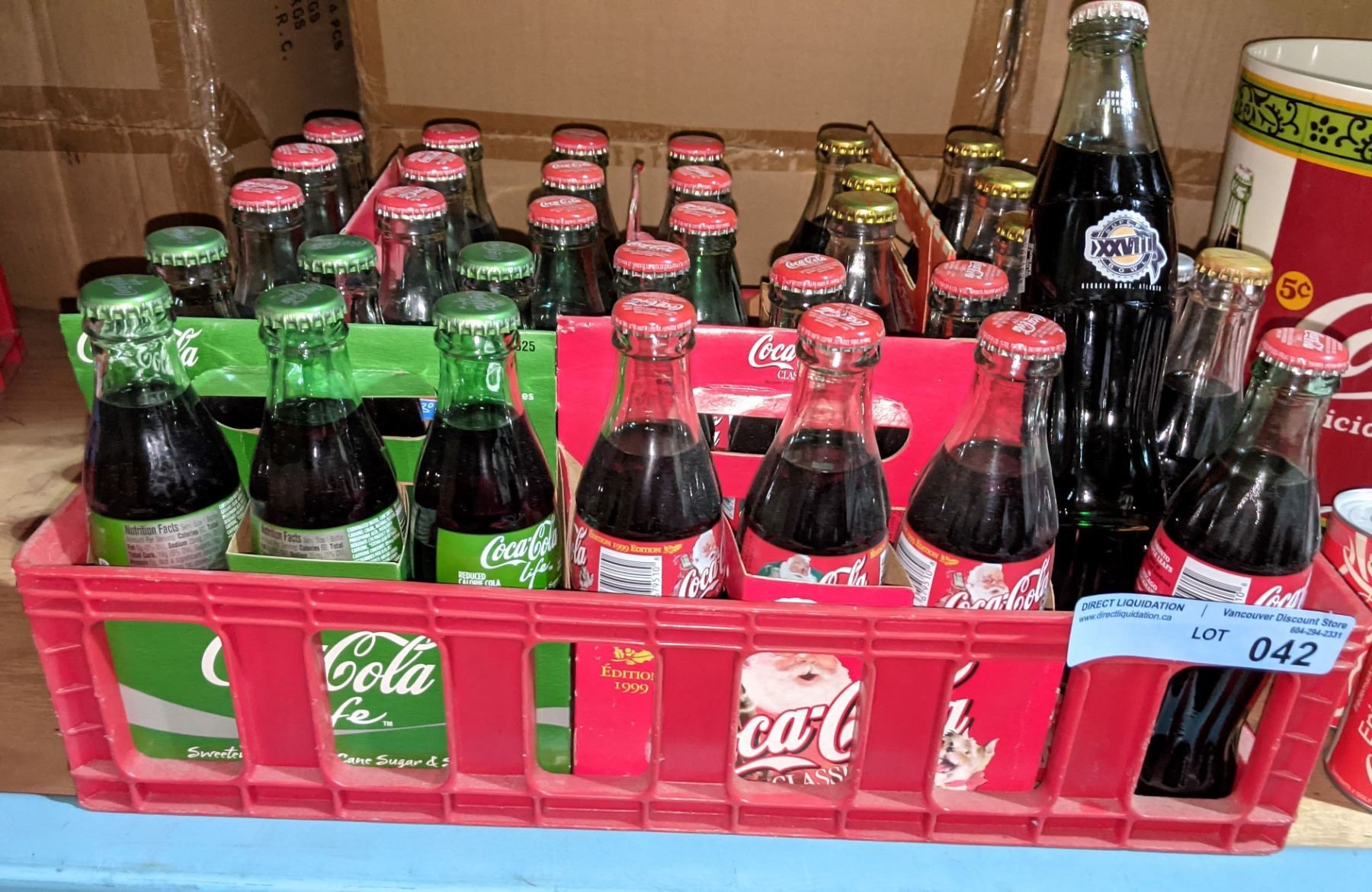 Coca-Cola six pack case with rare Super Bowl 28 Coke bottles