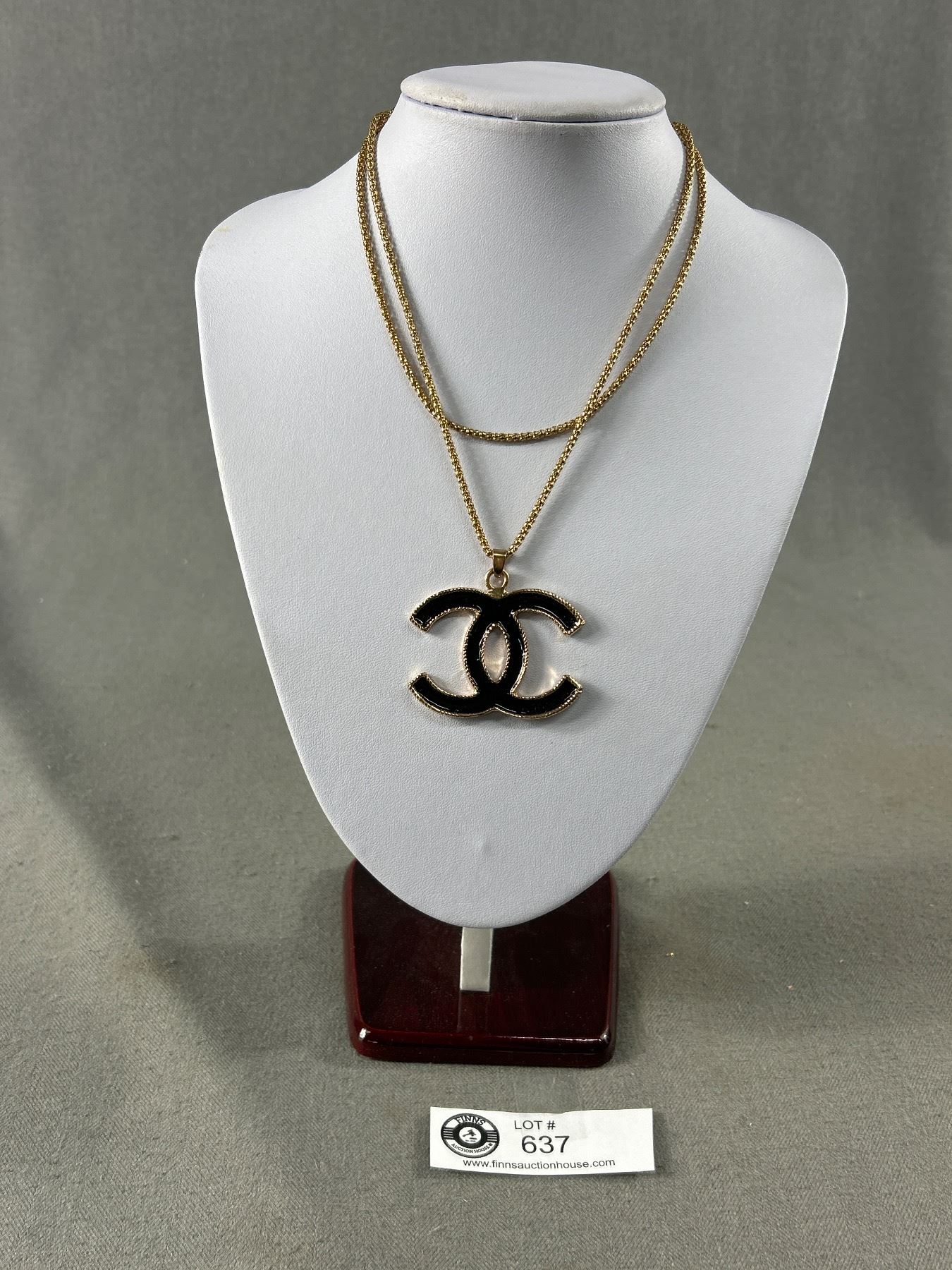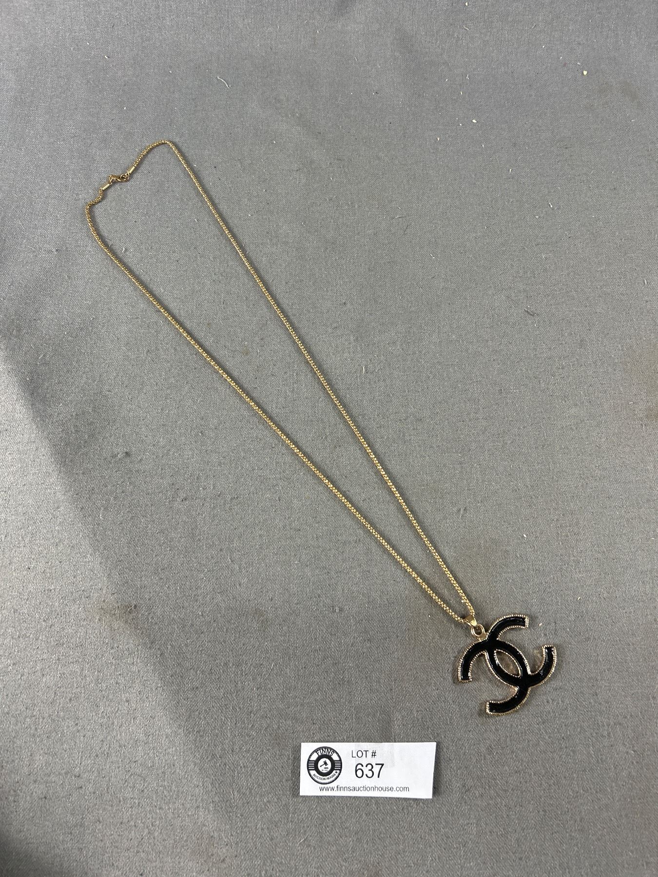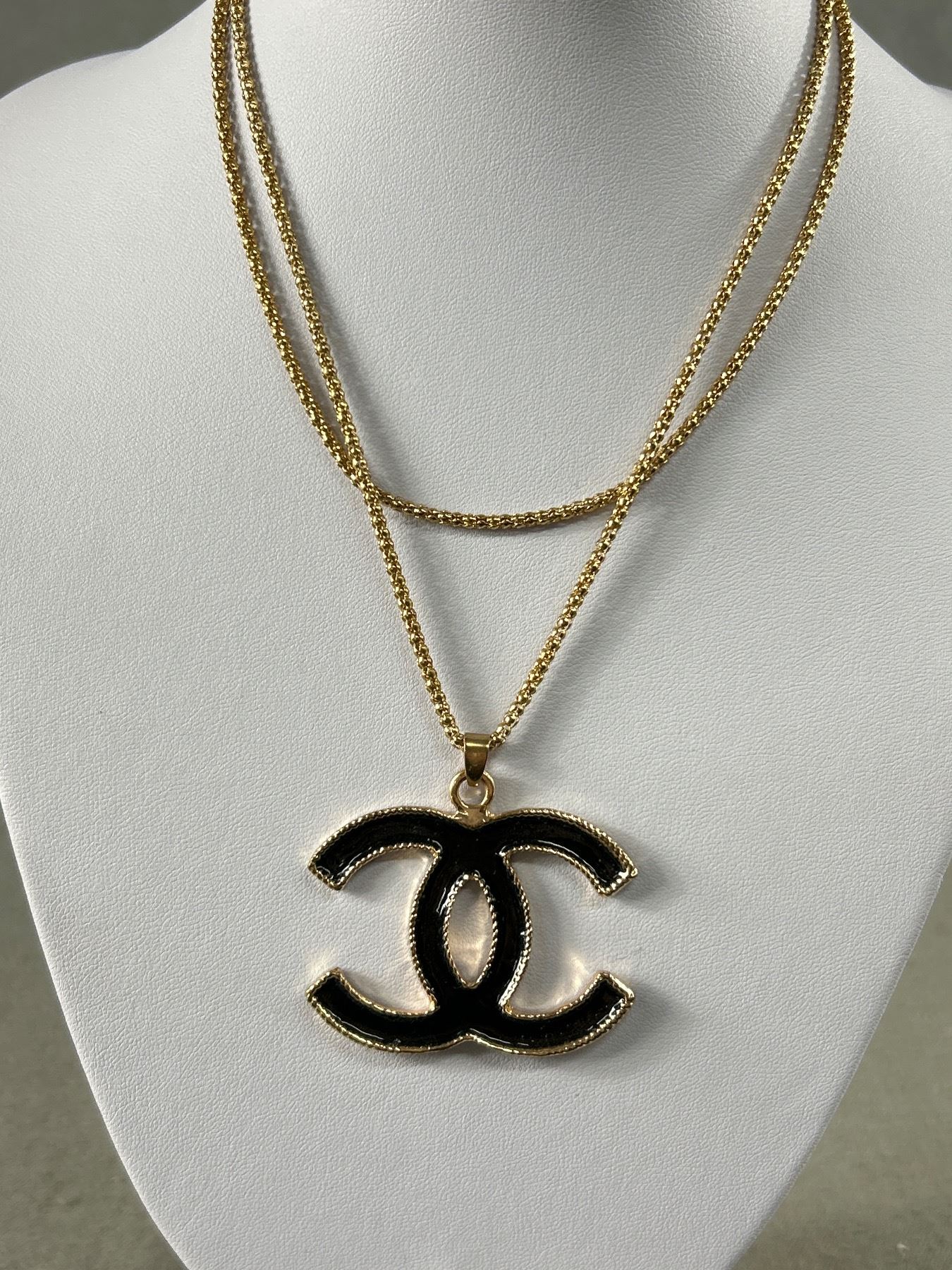 Coco Chanel Vintage Black Enamel Gold Tone Necklace
