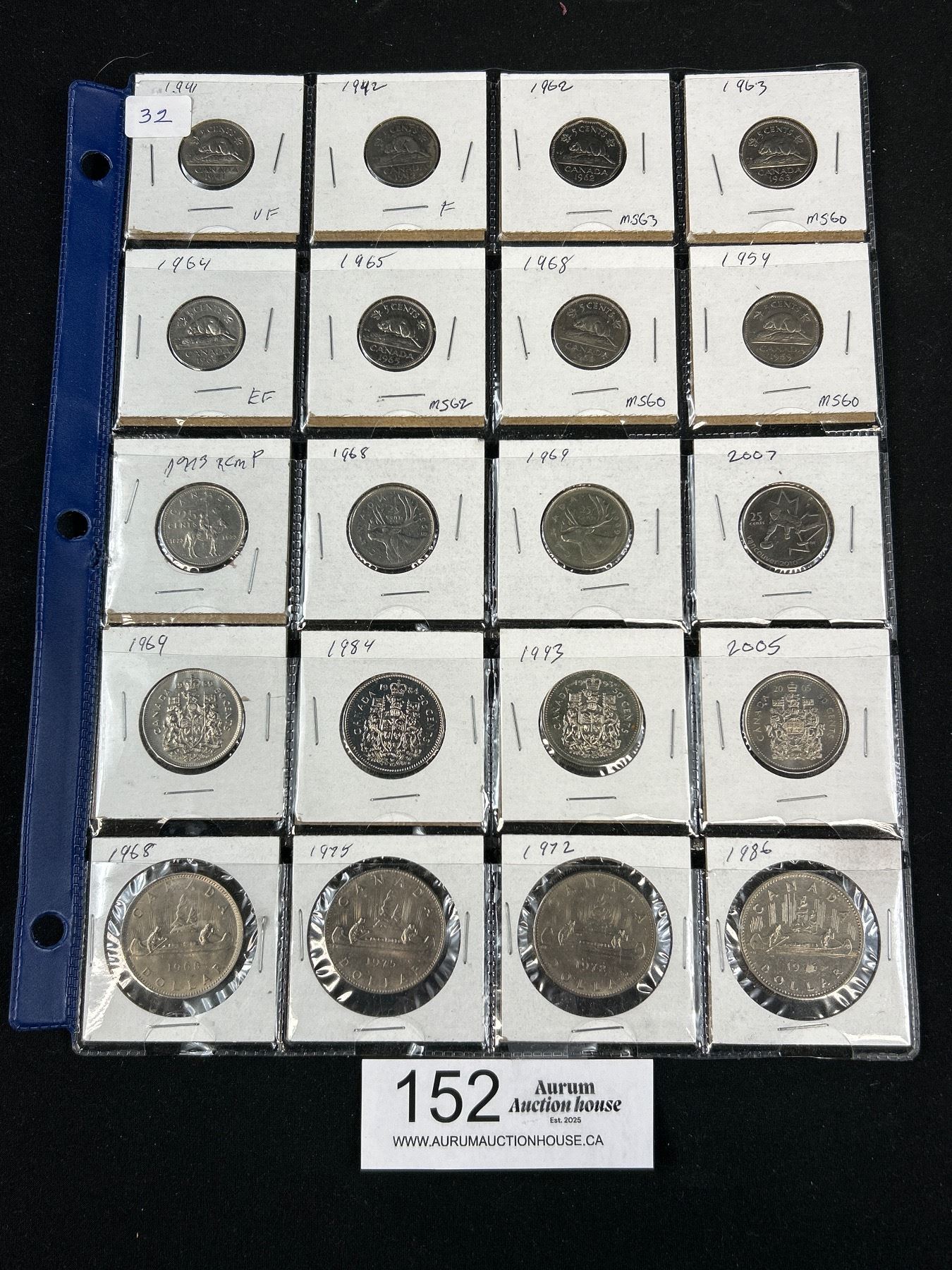 Coins, 8- 5 cent, 4- Quarters, 4 50 Cent, 4 $1 Coins, 1941-86 Including 61