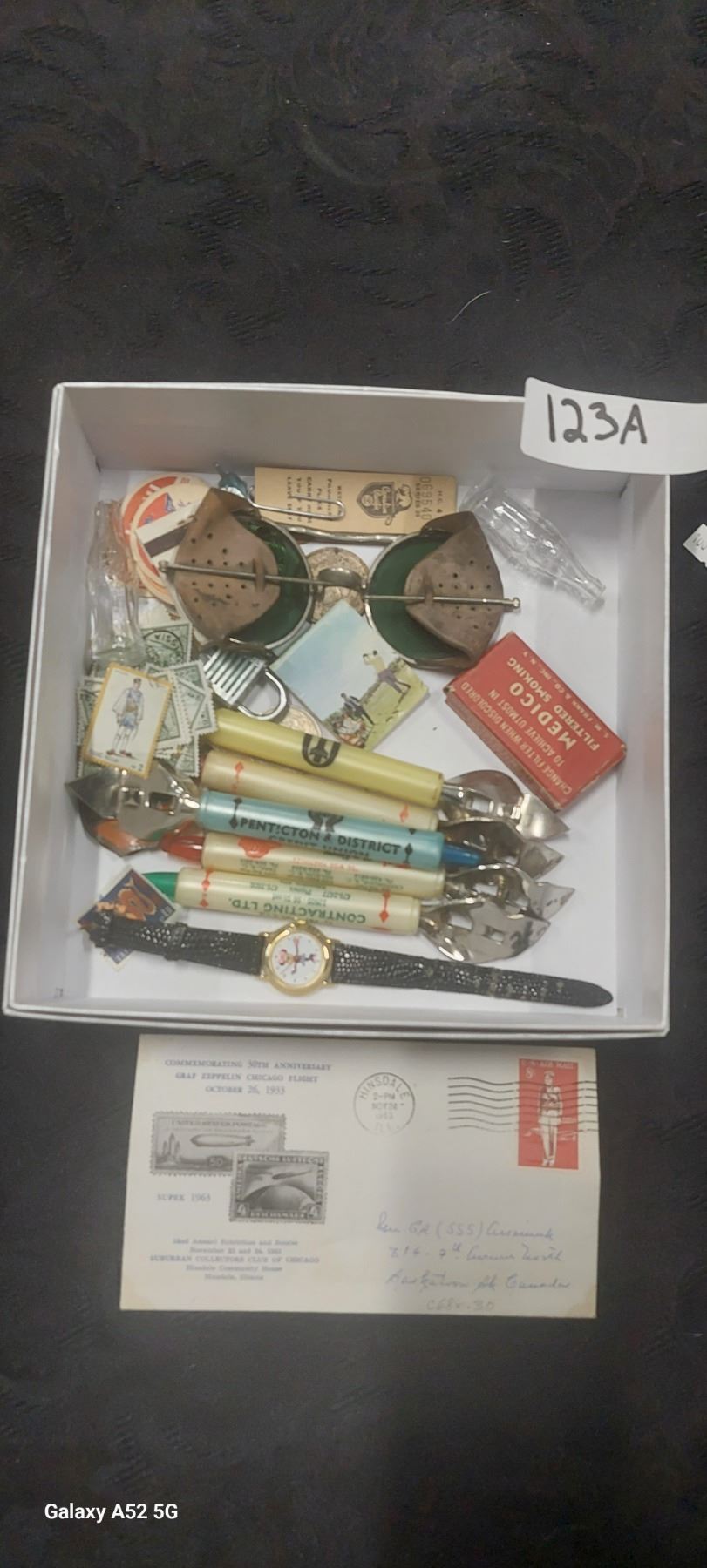 Collectable lot of openers, watch, stamps, steampunk glasses