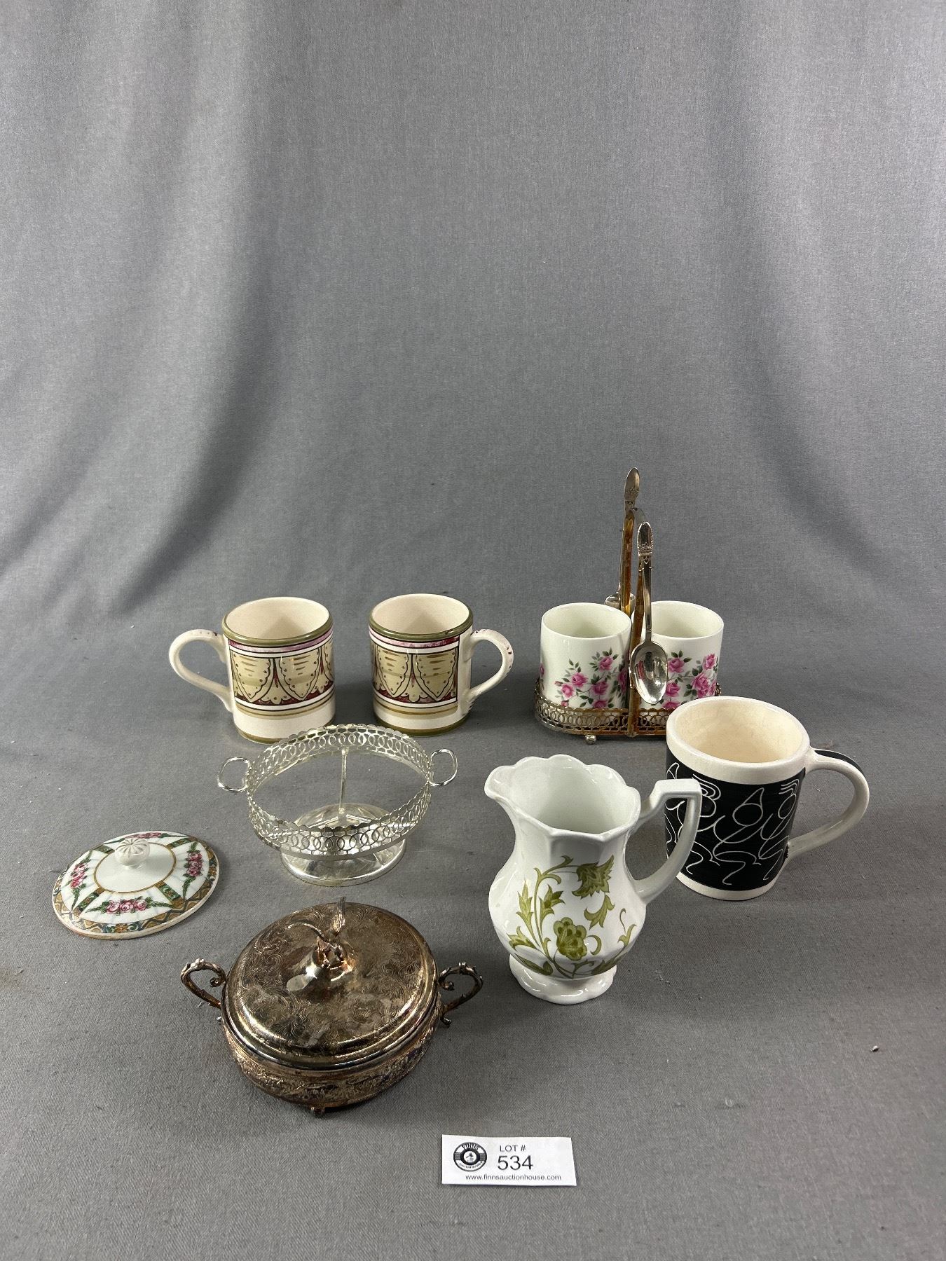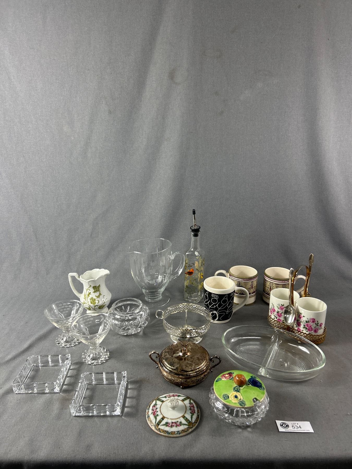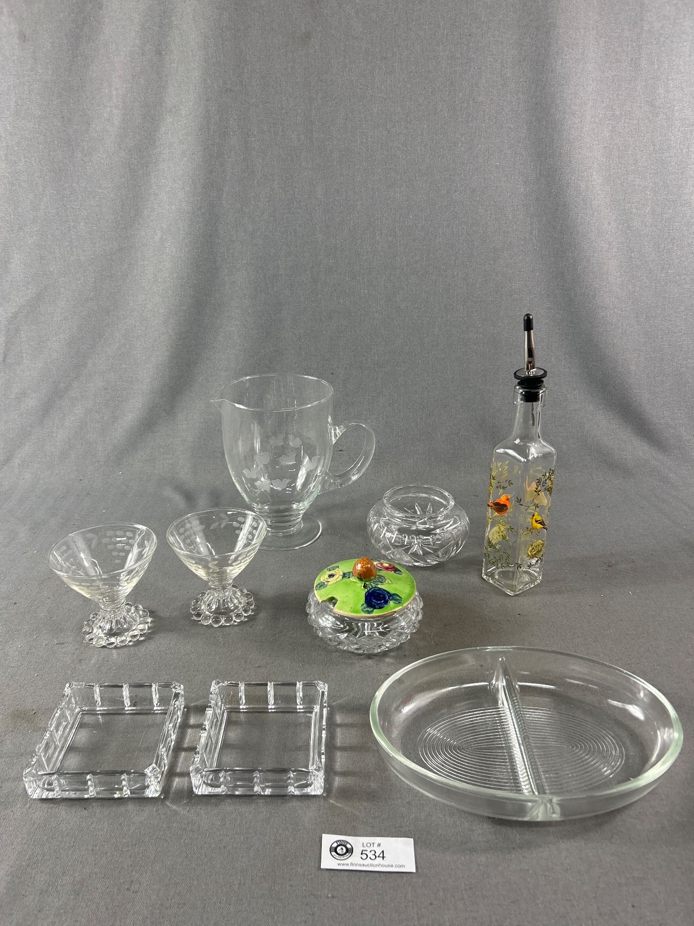 Collectible Glass & Serving ware Lot - Trinket Dishes, Coffee Mugs, Condiment Dish & More