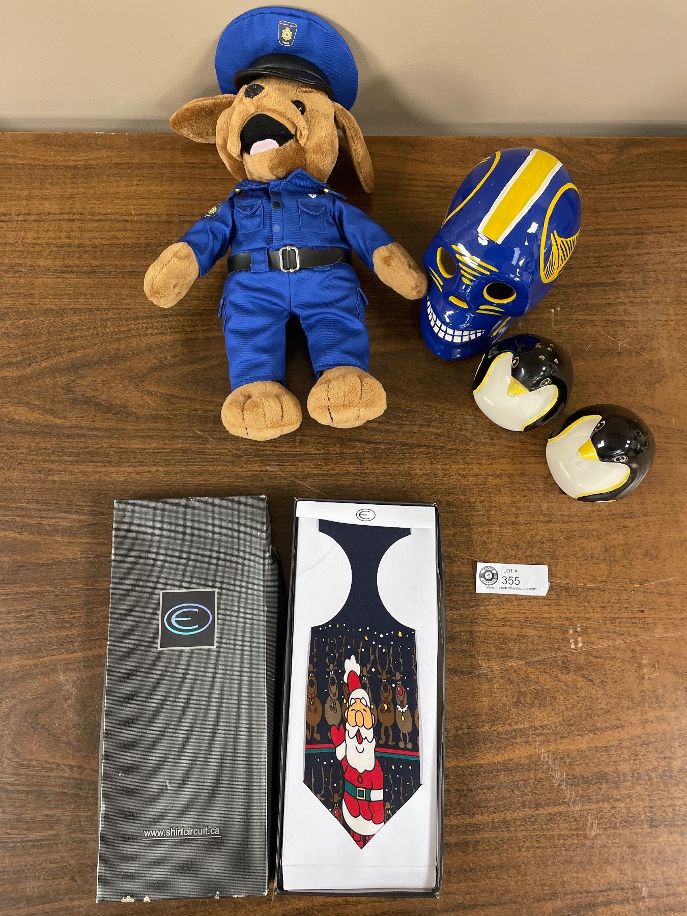 Collectible Lot - Corrections Stuffie, Ceramic Penquins, Holiday Tie, Etc