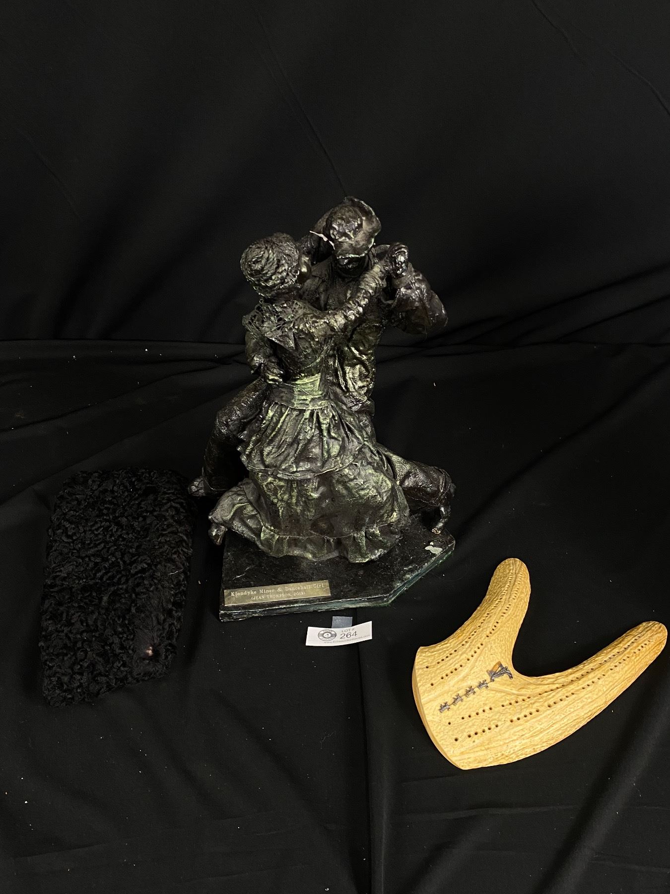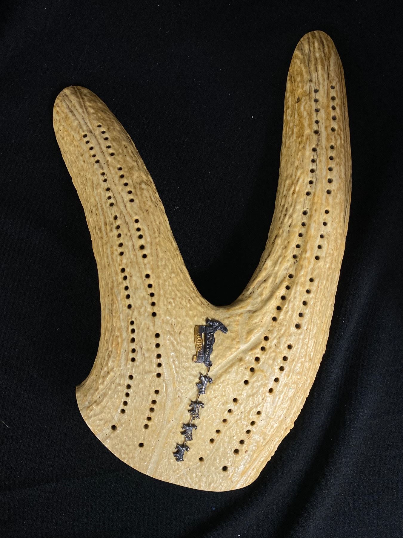 Collectible Lot Including Yukon Hand Carved Antler Crib Board, Vintage Hat and Klondyke Miner and Dancehall Girl, Jean Thompson 2013