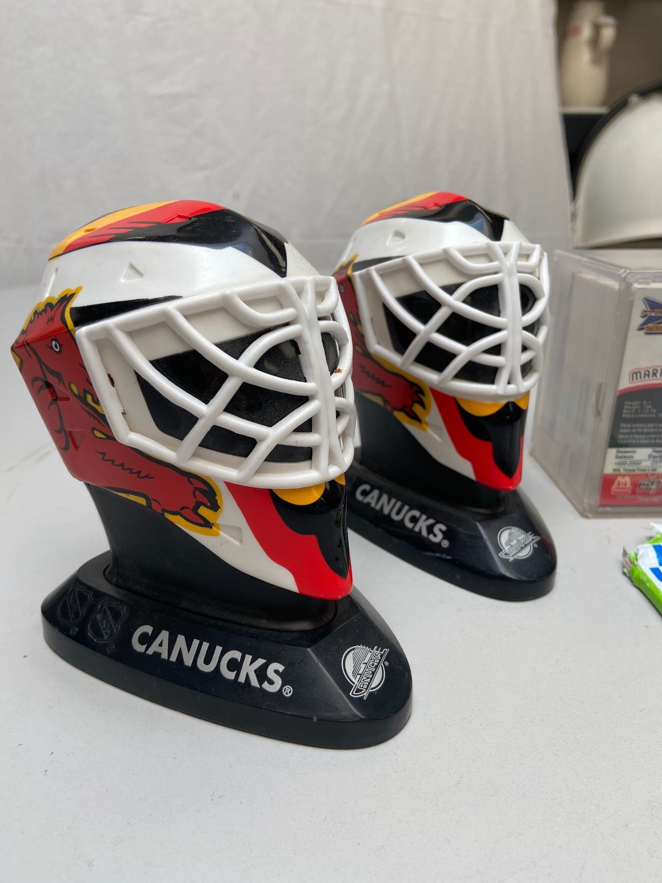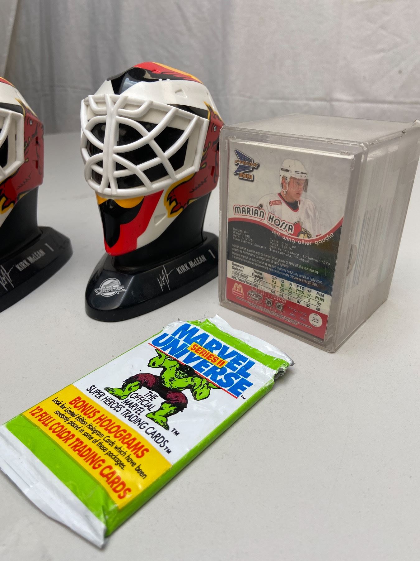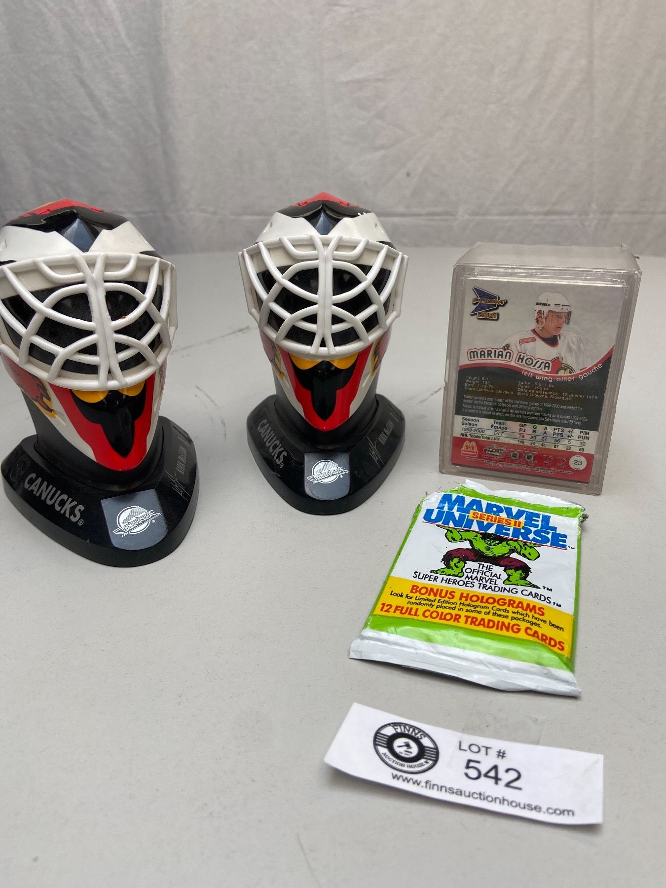 Collectible Trading Card Lot. Hockey, Marvel Universe Plus 2 Canucks Goalie Heads