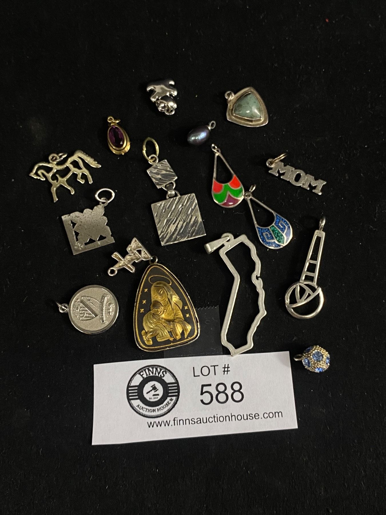 Collection Of 16 Pendants at Least 8 Are Marked 925 Silver
