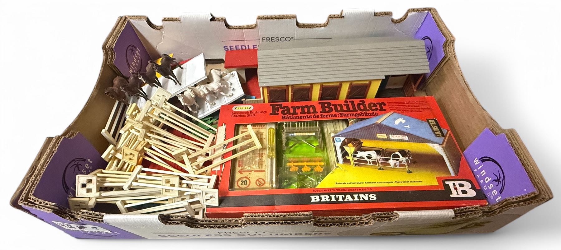 Collection Of Britain's Toys: Fences, Farm Builder, Horses, Stables, & More