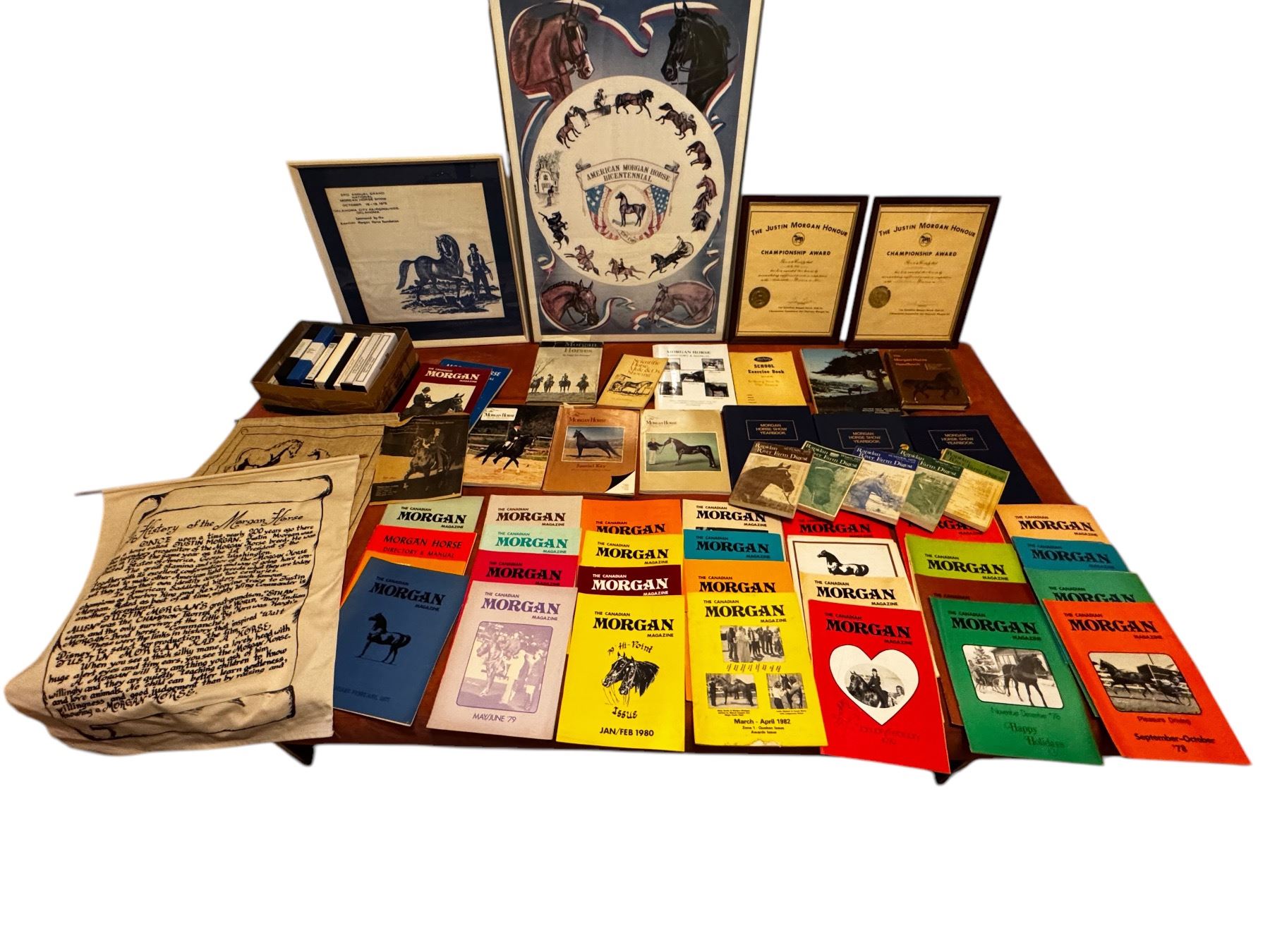 Collection Of Morgan Horse Memorabilia: Awards, Books, Table Cloth Art, Wall Art, & More