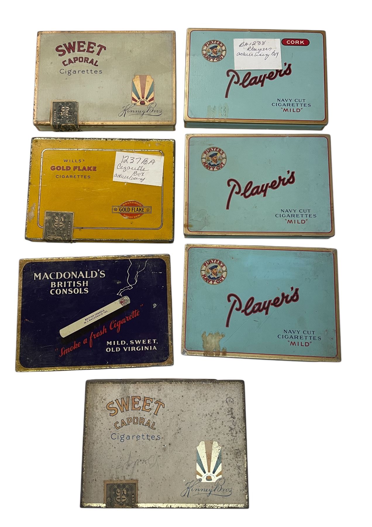 Collection of 7 Metal Cigarette Cases/Boxes Sweet Corporal Gold Flake Players & McDonalds