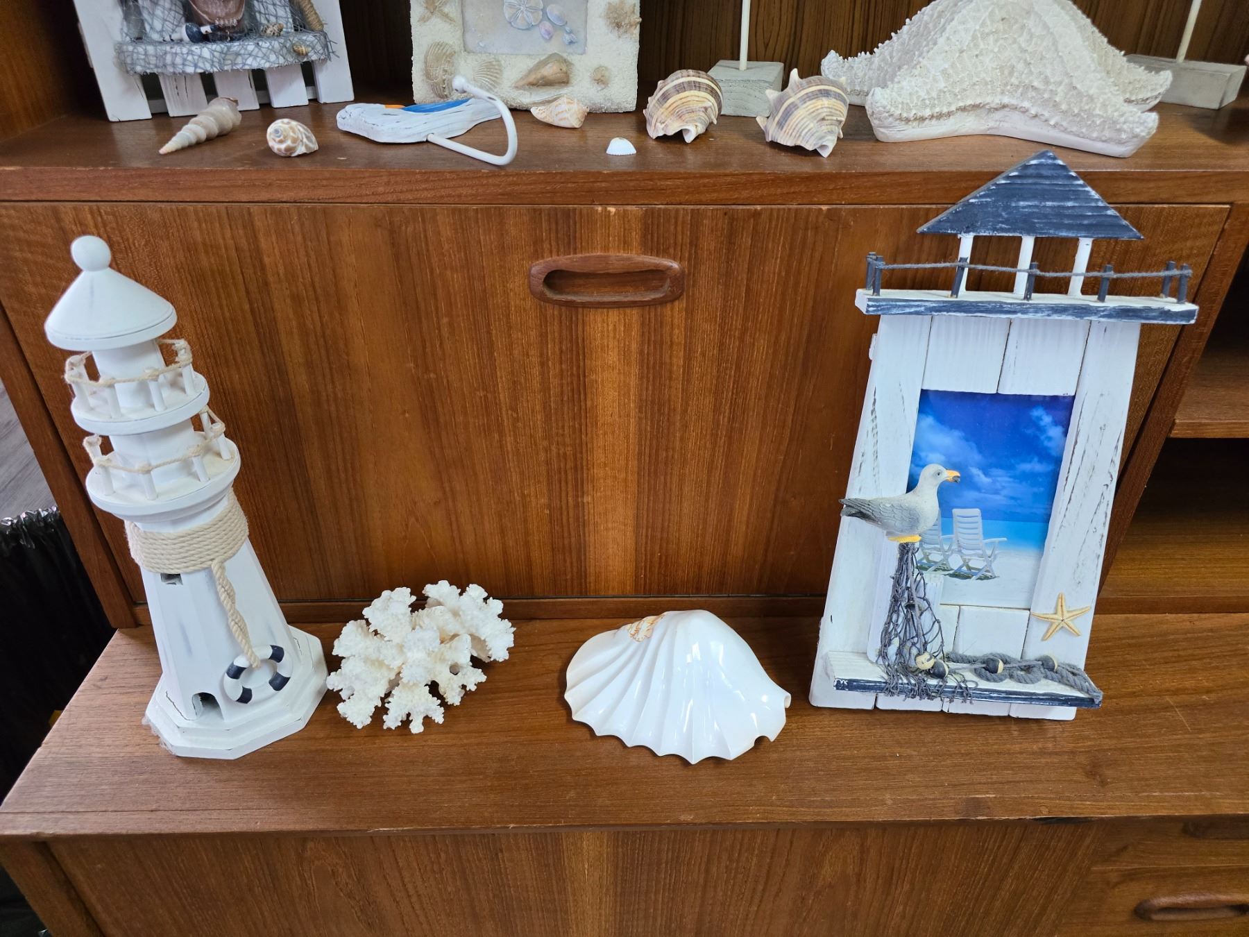 Collection of Beachy Display items - Items have not been tested - Viewing Recommended- 17% Buyer Fee. Payment Processed through Live Auction World ( Visa or Master Card ) pick up Saturday or Tuesday