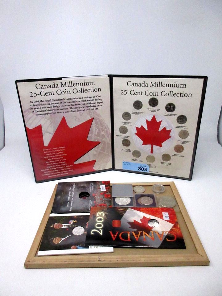 2 Silver Half Dollars, Canada Large Nickel, 50% Silver Stage Coach Dollar, 25¢ Millennium Set and more.