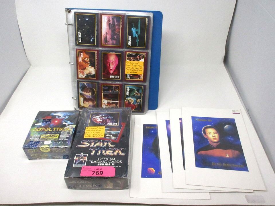 2 Sealed boxes of trading cards, binder of 216 trading cards, and 4 unframed 5" x 7" promotion photos.