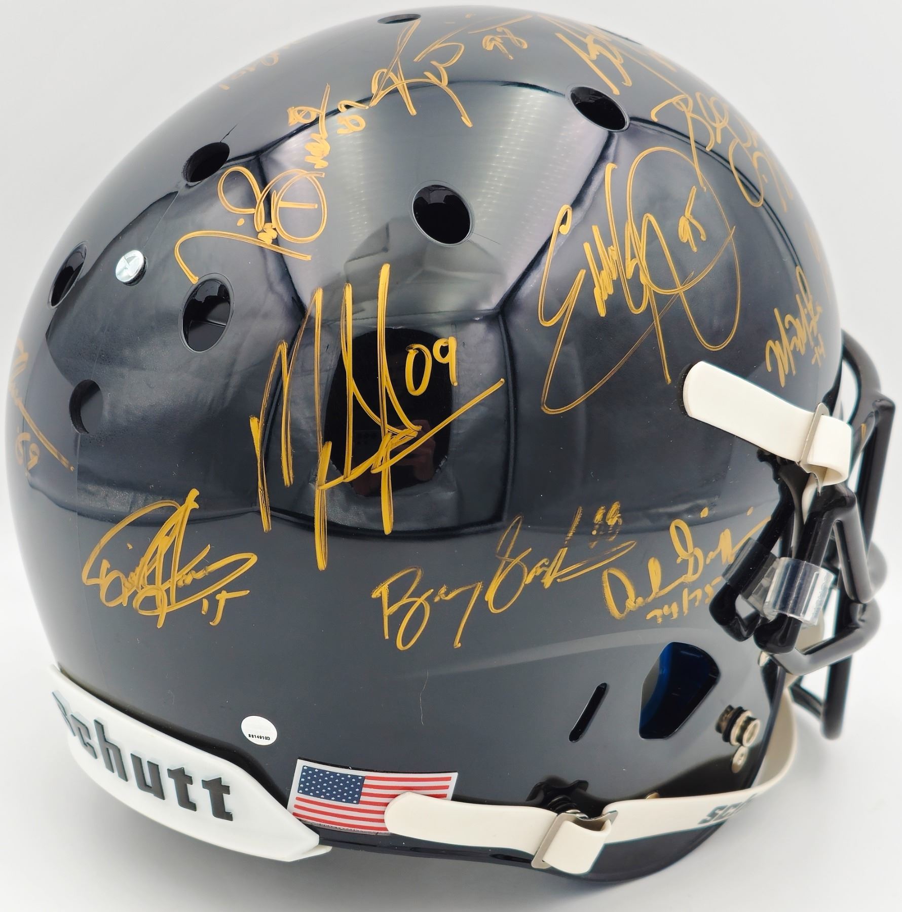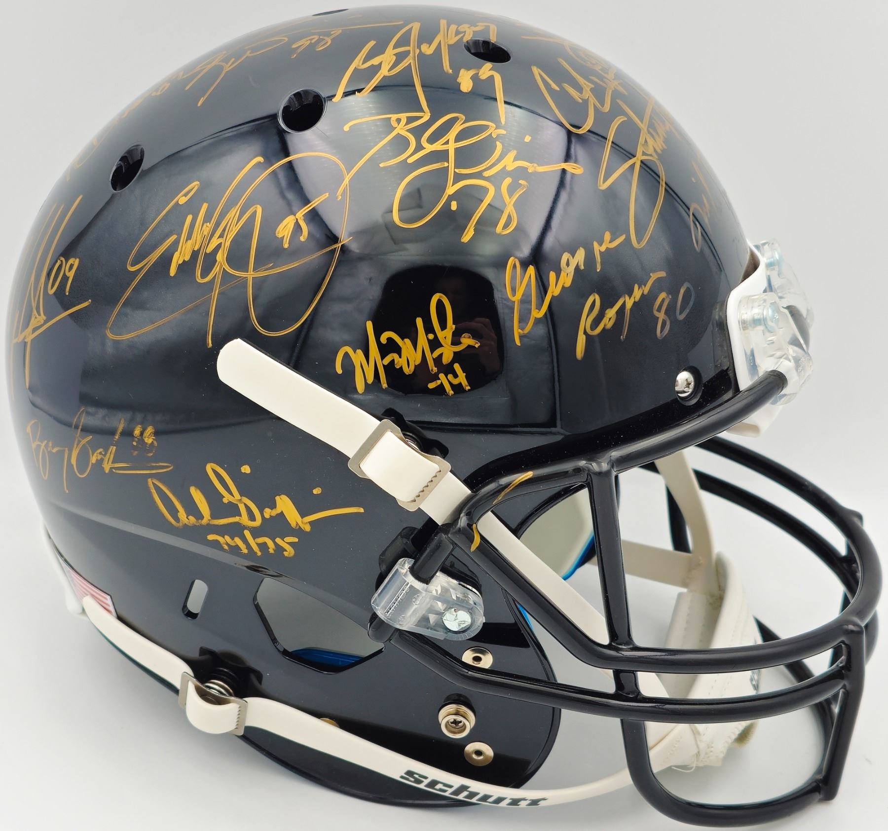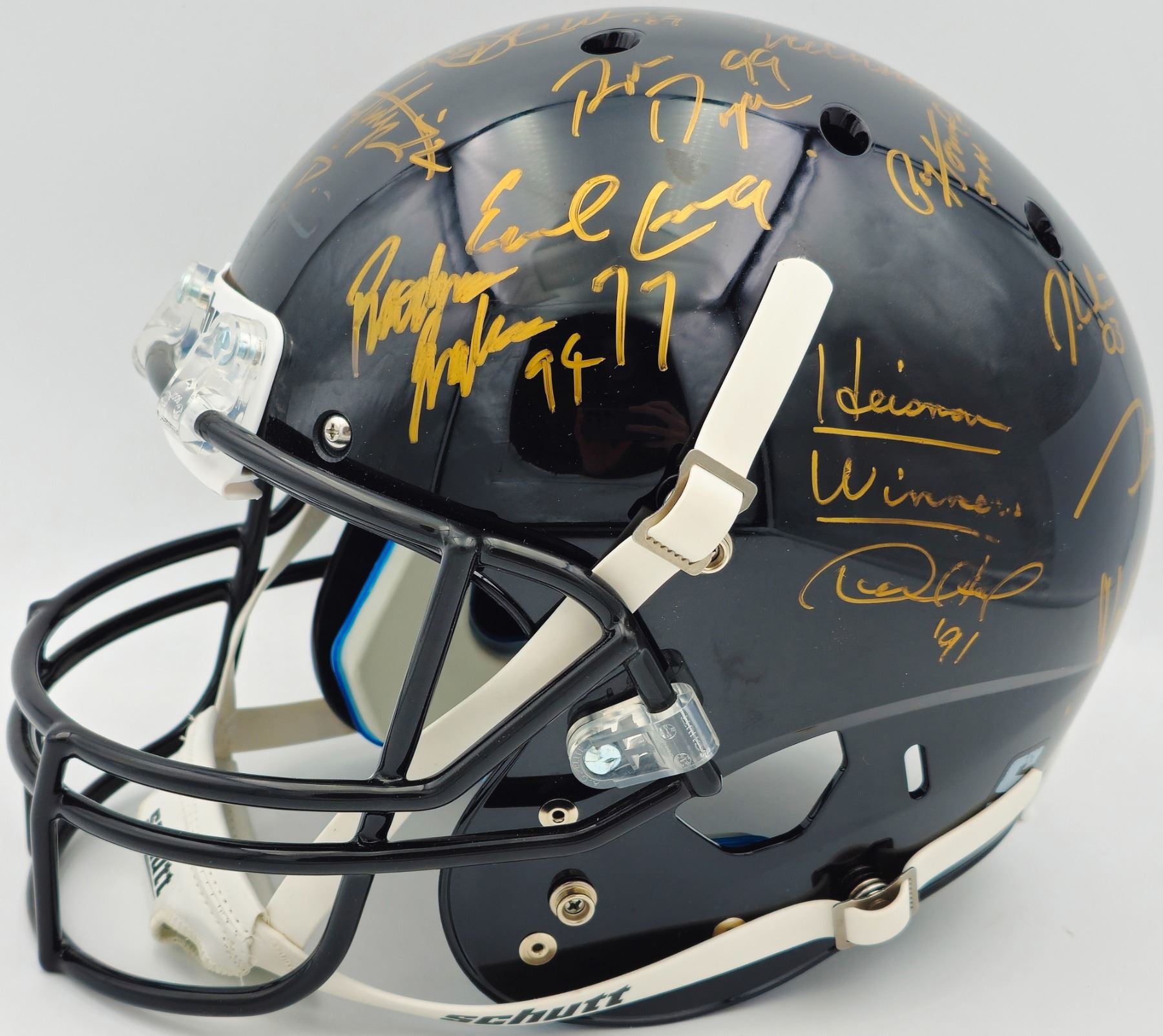 This is a Black Shutt Authentic Full Size Helmet that has been hand signed by members of the College Football's Best Heisman Winners. The members that signed this helmet are Bo Jackson, Barry Sanders, Marcus Allen, Earl Campbell, Tim Brown, Desmond Howard, Ricky Williams, Derrick Henry, Eddie George, Archie Griffin, Ron Dayne, Billy Sims, George Rogers, Steve Owens, Mike Rozier, Paul Hornung, Andre Ware, Charlie Ward, Johnny Rogers, Rashaan Salaam, Jason White, Marcus Mariota, and Mark Ingram. This item has been certified authentic by Steiner