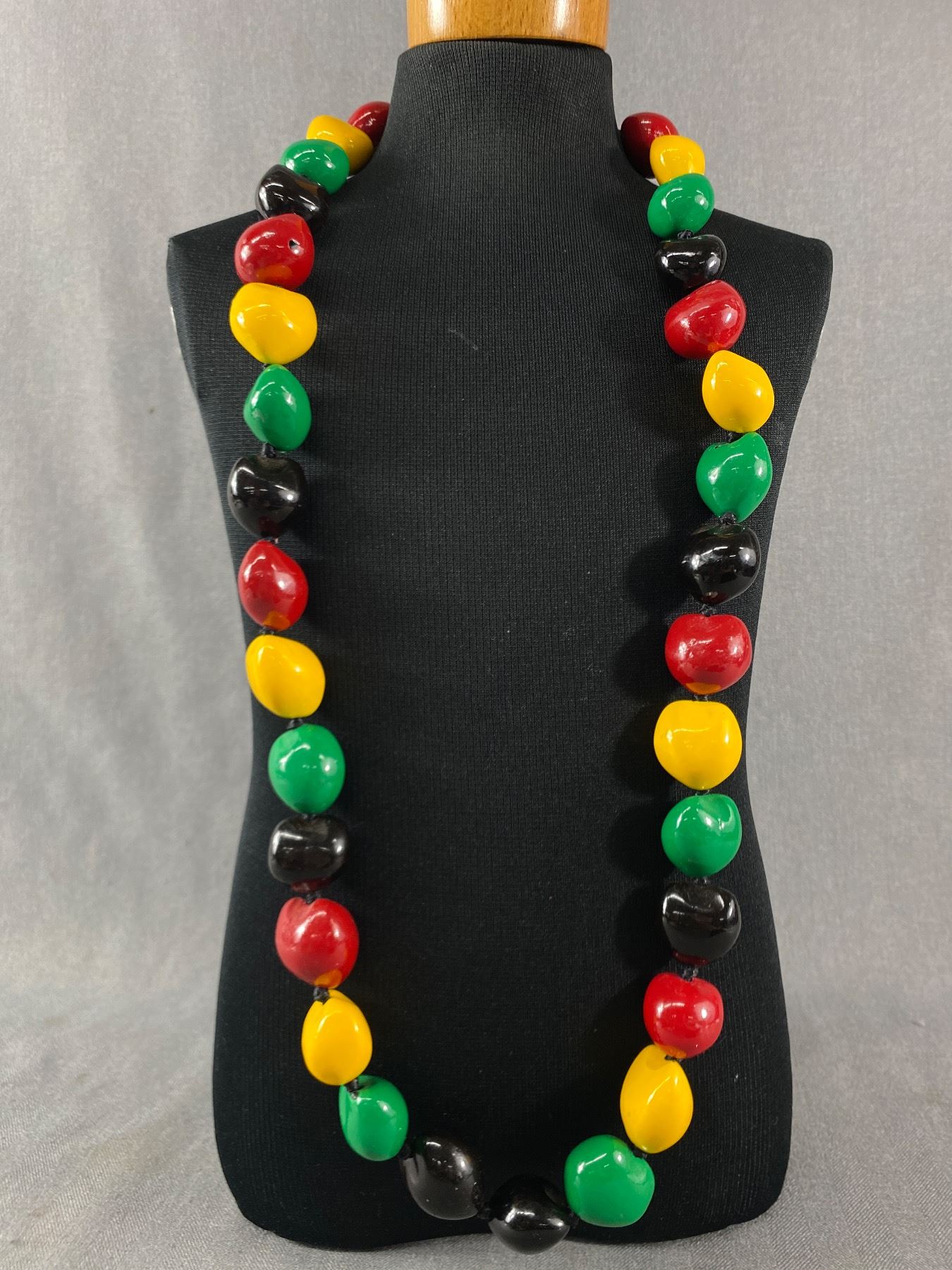 Colourful Painted Genuine Hawaiin Kukui Nut Beaded Necklace 34" L