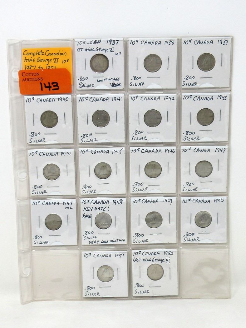 .800 Silver. 1937 to 1952. Includes the rare 1948 low mintage dime.