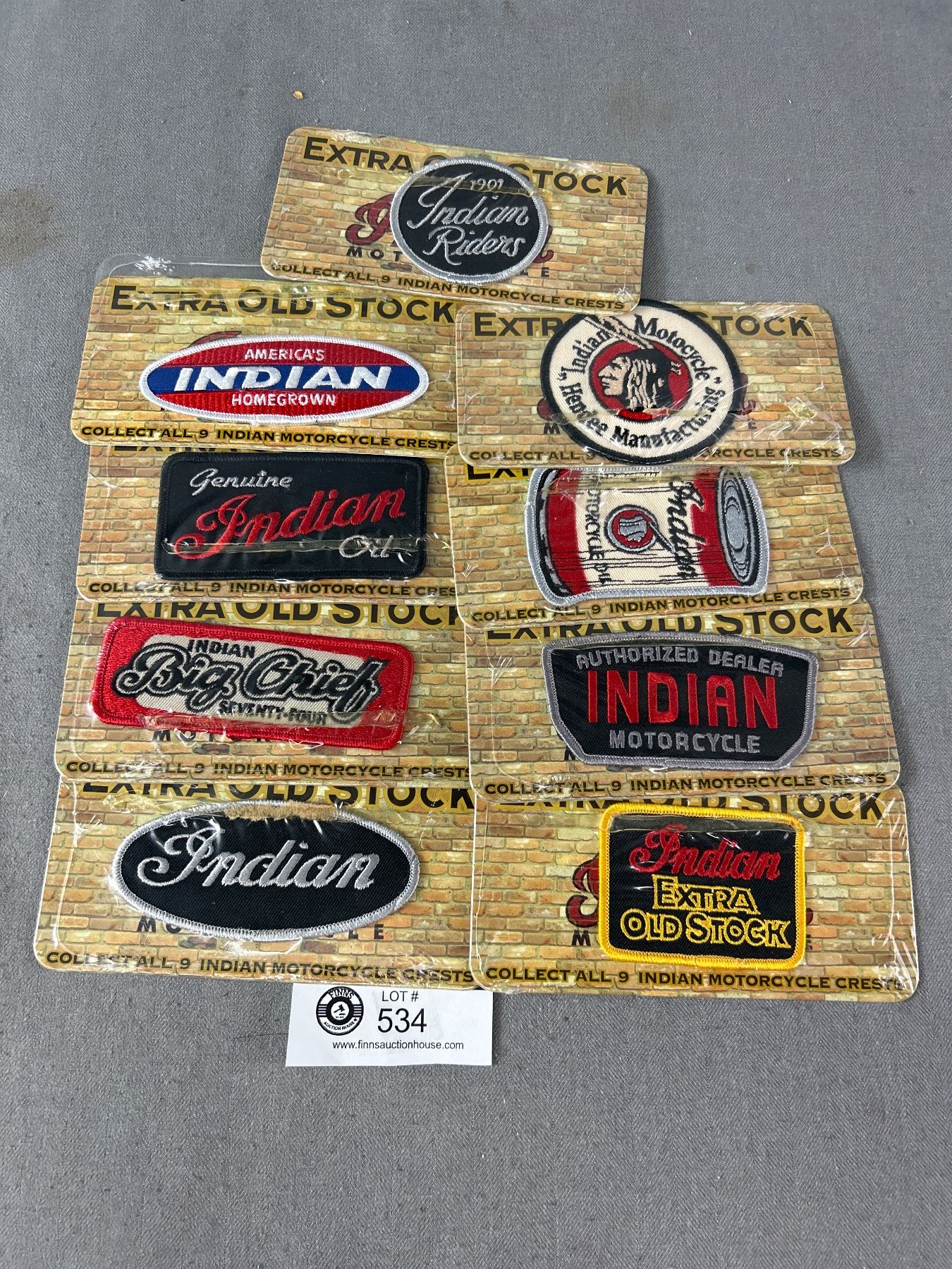 Complete Set Of 9 Extra Old Stock Indian Motorcycle Crests.