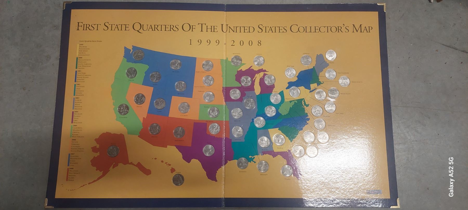 Complete collection of all 50 state quarters in holder 17"x28" open