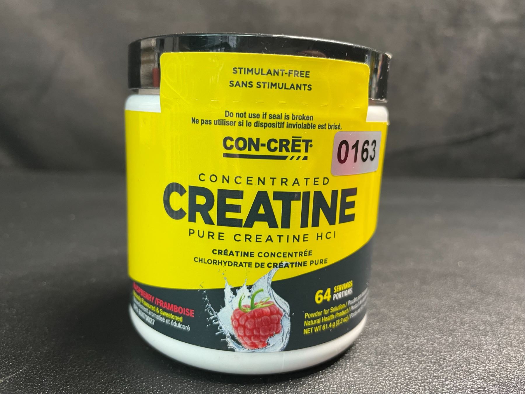 - Con-Cret Concentrated Creatine HCI Powder/Workout Supplement (61.4g) Raspberry Flavor