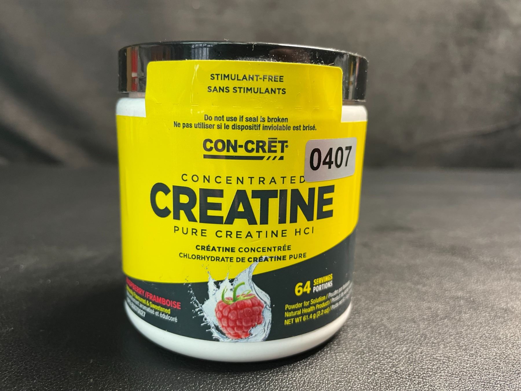 - Con-Cret Concentrated Creatine HCI Powder/Workout Supplement (61.4g) Raspberry Flavor