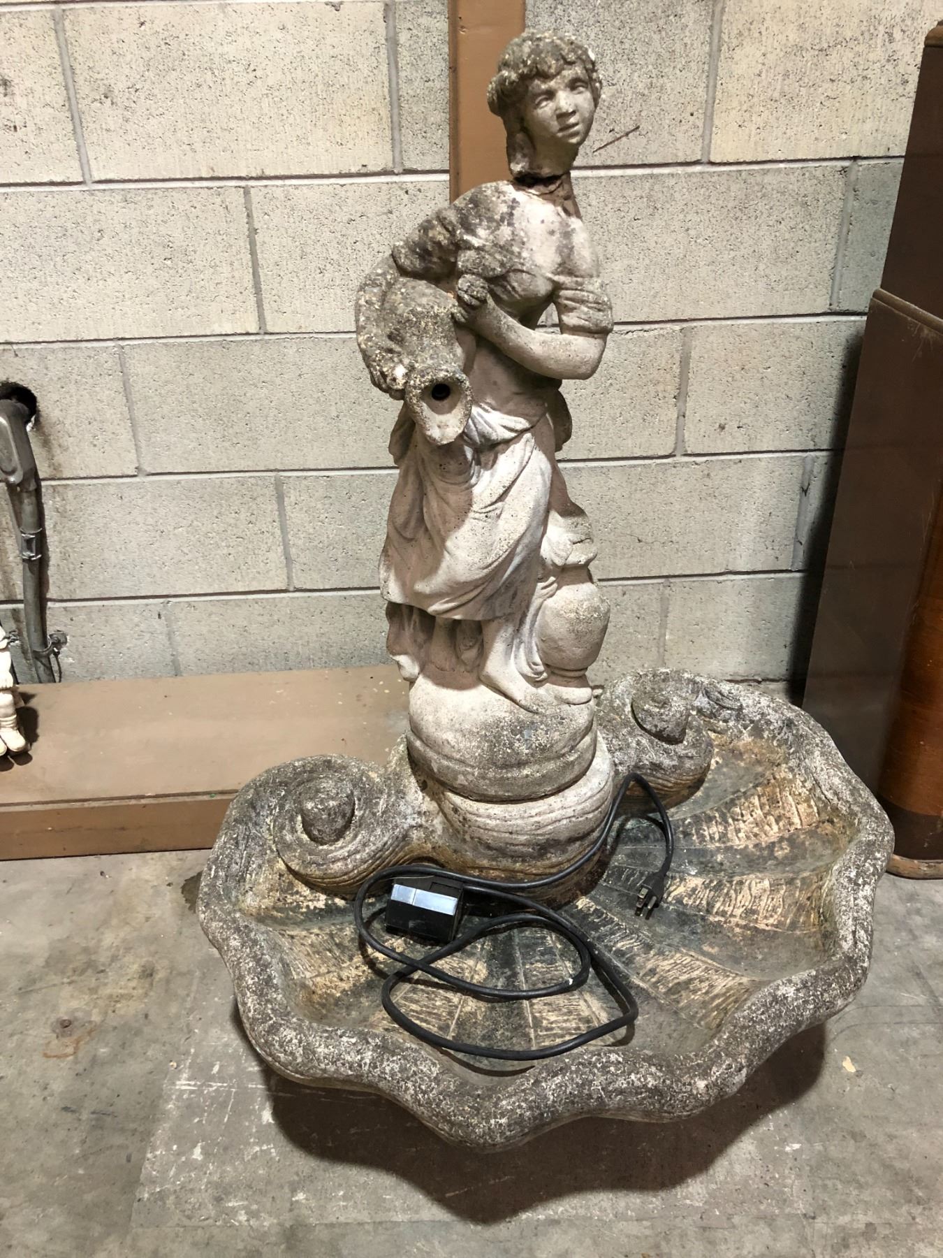 Concrete garden fountain w/ figural woman statue (head needs to be re-attached)