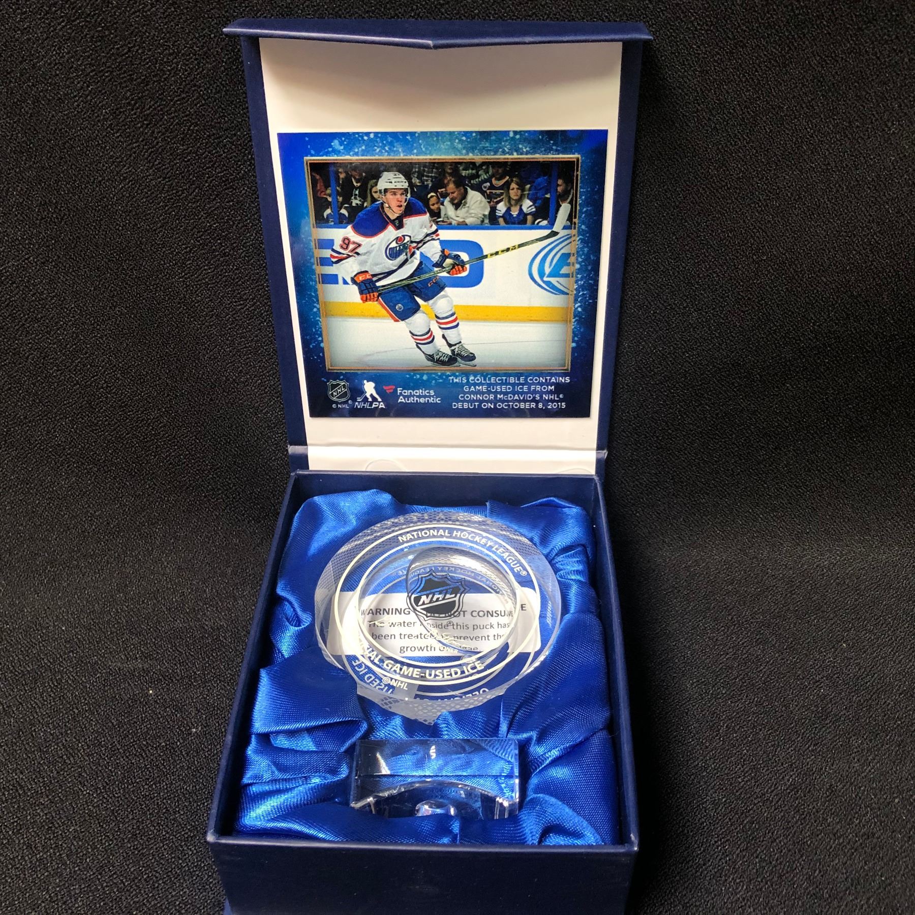 Connor McDavid Edmonton Oilers NHL Debut Crystal Puck - Filled with Ice from NHL Debut