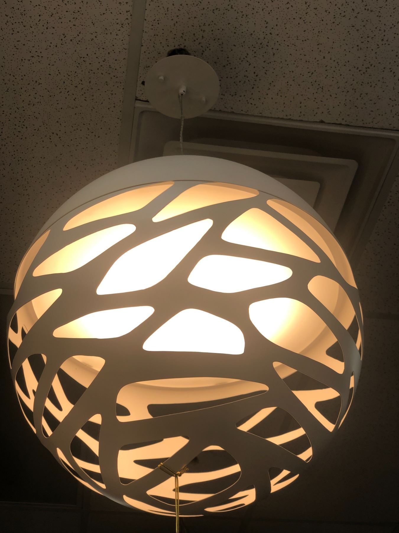 Contemporary white round decorative ceiling light - bidder responsible for removal