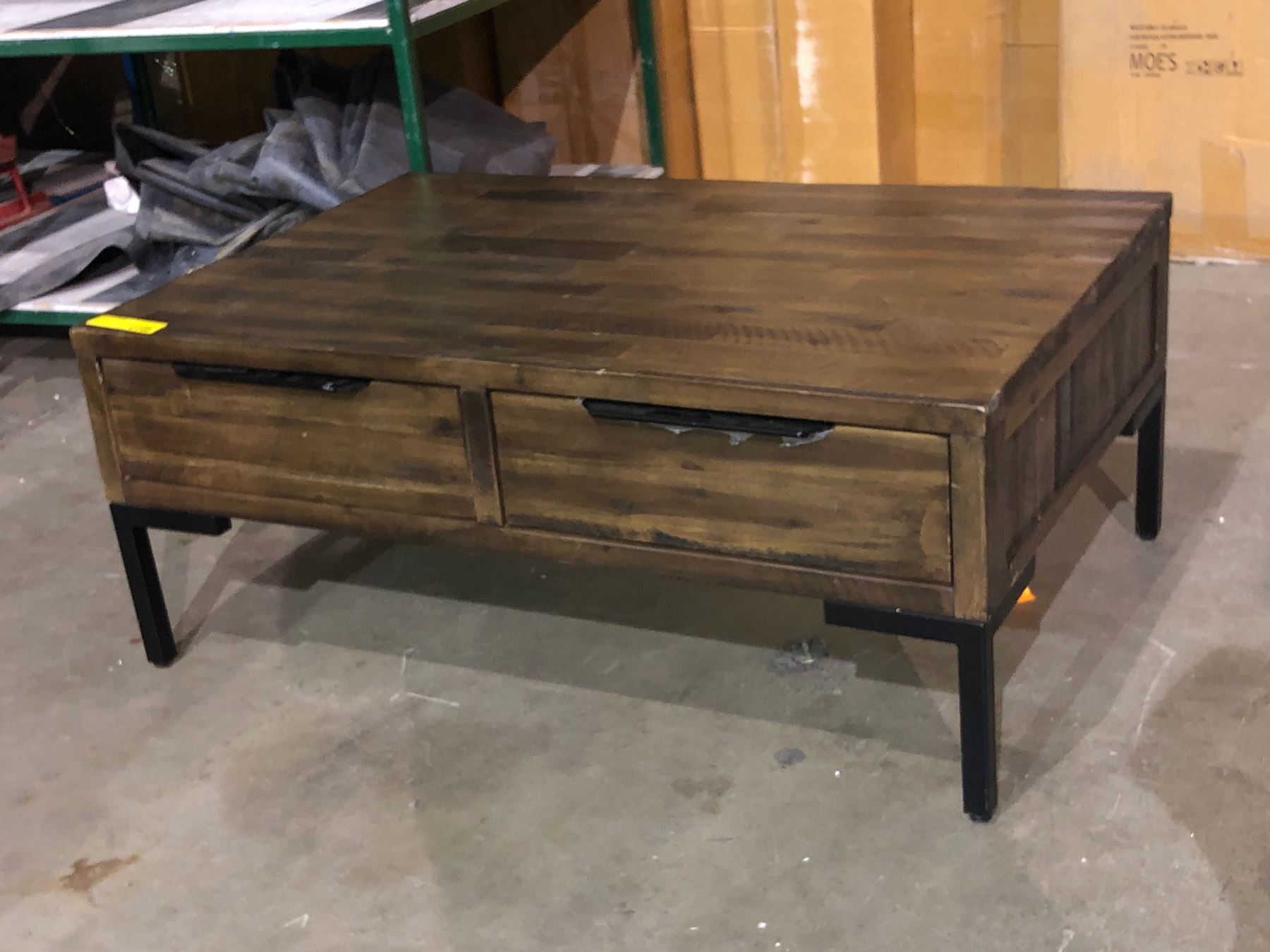 Contemporary wooden coffee table (Approximately 40in wide x 26 1/2in depth x 16 1/2in high)
