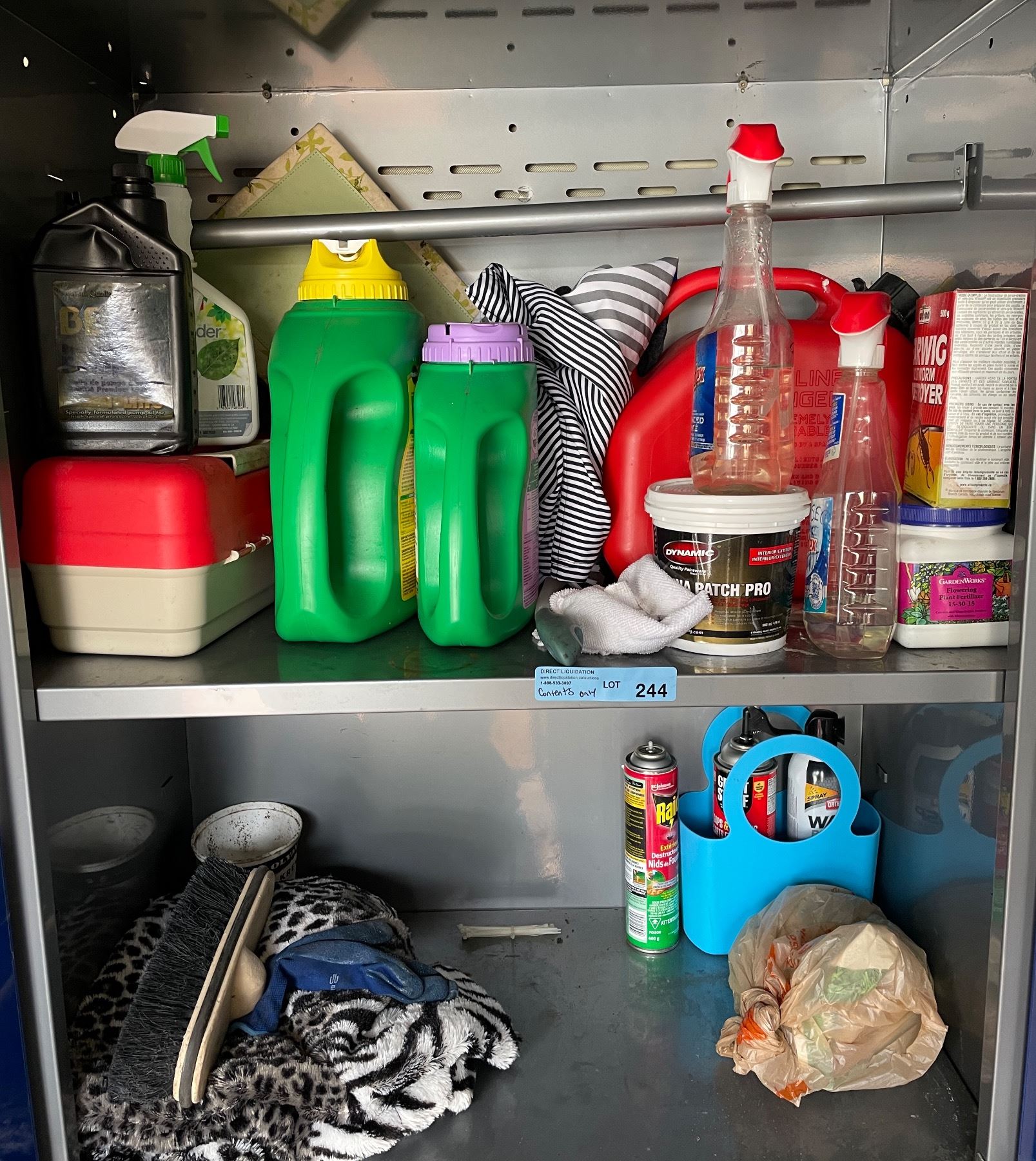 Contents of cabinet, & shed (Does not include previous lots or pool accessories)