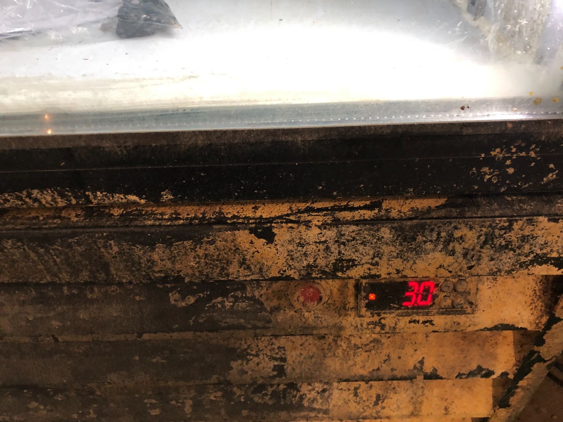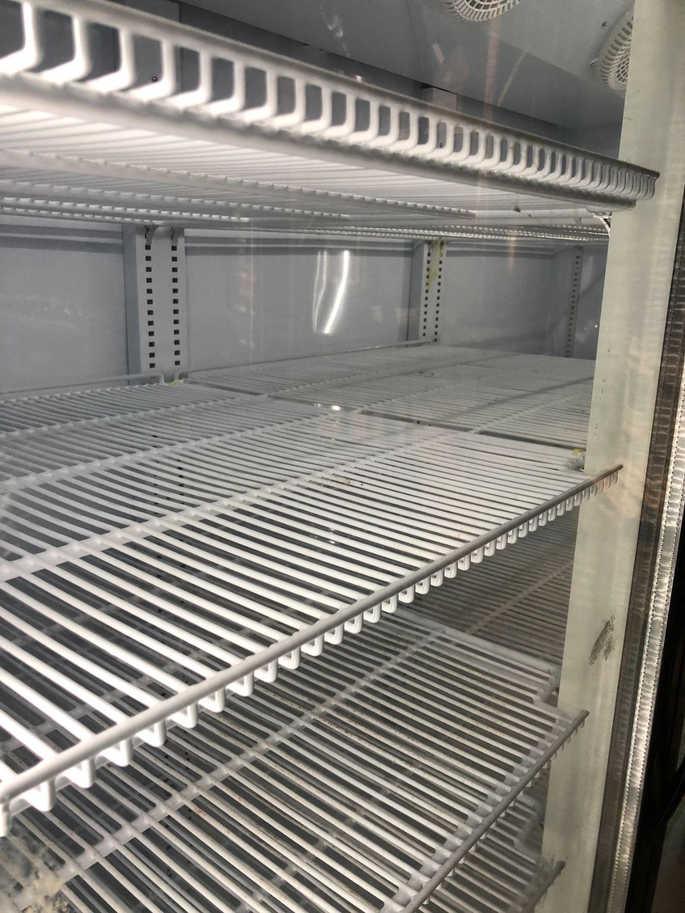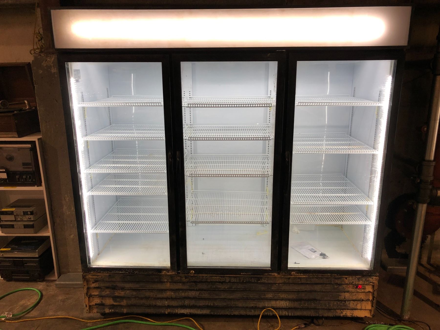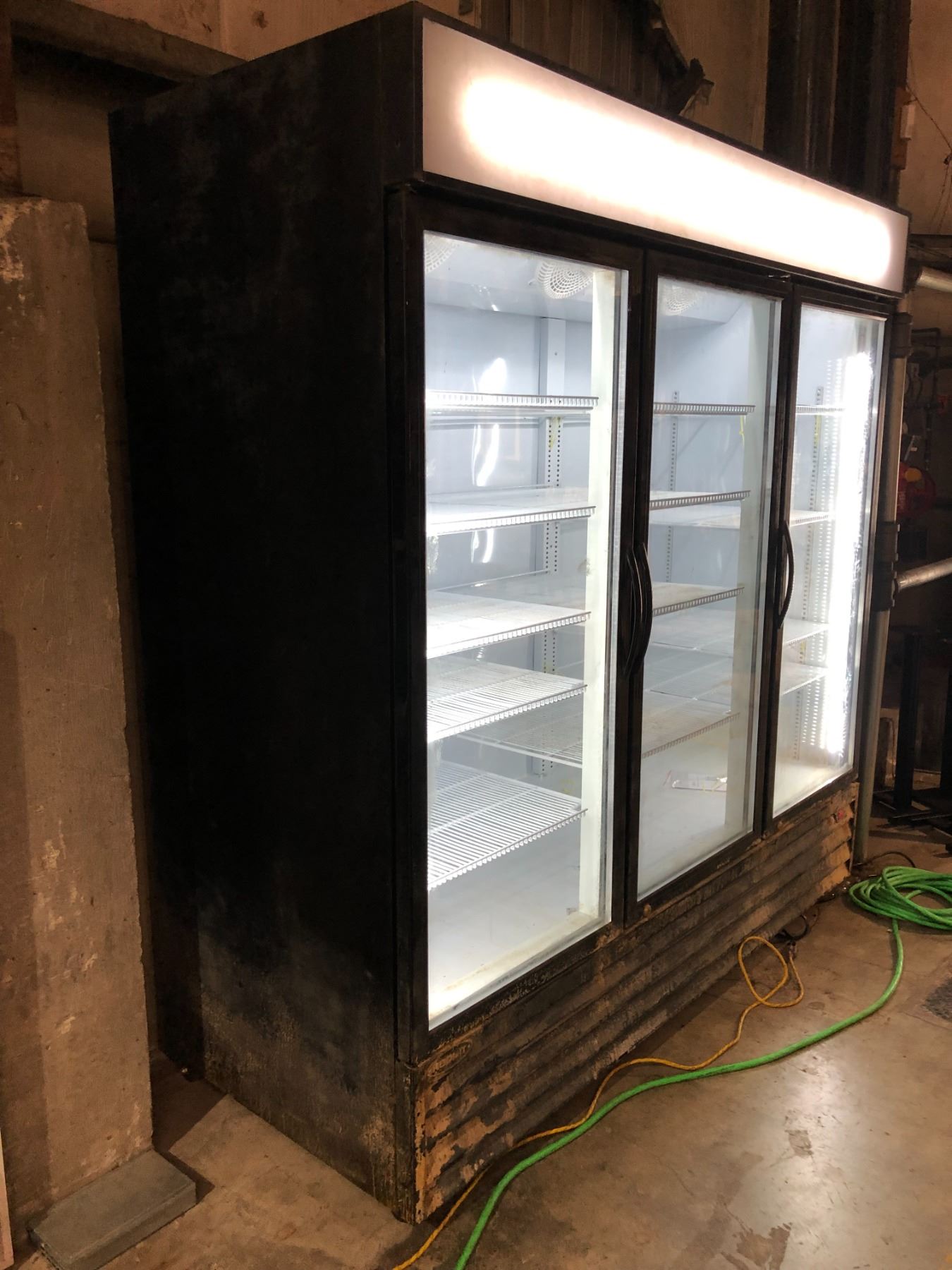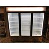 Cool-it upright 3 door glass front display cooler - rough look on bottom on purposely painted for production filming purposes (tested - good working order)