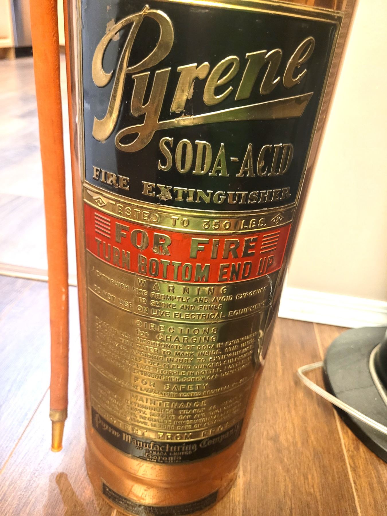 Pyrene vintage copper fire extinguisher, 24". Pick up 9-10