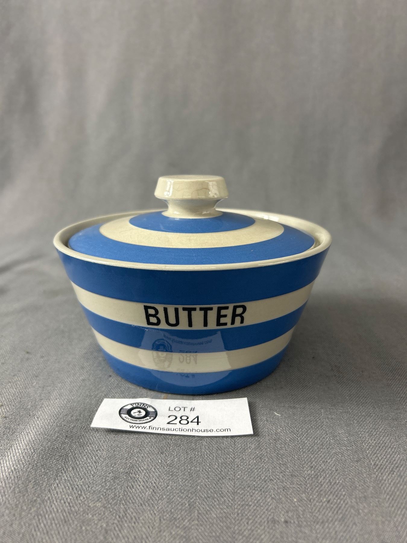 Cornish Ware Butter Dish By TG Green, Old Green Mark. No Chips Or Cracks, Some Crazing On Lid.
