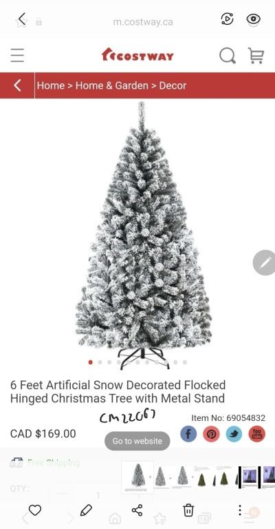 Costway 6 Feet Artificial Snow Decorated Flocked Hinged Christmas Tree with Metal Stand Retail $170