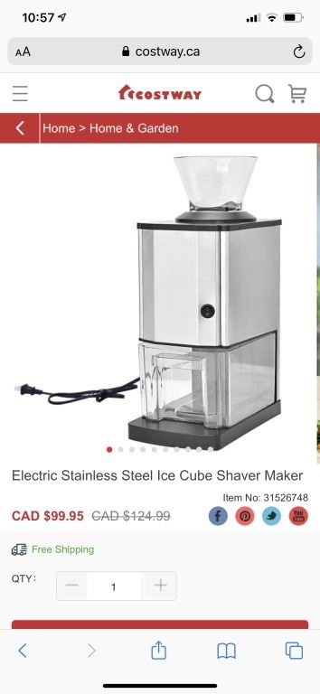 Costway Electric Ice Crusher Shaver Machine Snow Cone Maker Shaved Ice 143 lbs