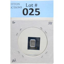 1 Gram .9995 Fine Platinum PAMP Suisse Bar