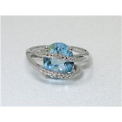 Sterling silver. Trillion cut topaz & 2 shoulder diamonds. Retail value $220.