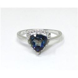 Sterling silver. 1.25 Carat heart cut topaz & 2 side diamonds. Includes $350 certificate.