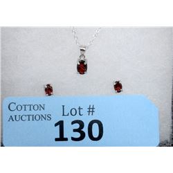 New Sterling Silver Garnet Earrings & Pedant