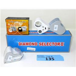 Diamond Tester in Case and 3 Jeweler's Loupes