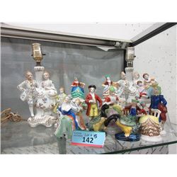 Pair of 12" Occupied Japan Lamps & 13 Figurines