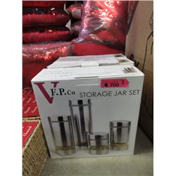 3 New 4 Piece Glass Storage Jar Sets-Silver Colour
