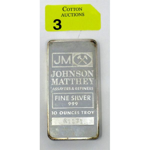 10 Oz .999 Silver Johnson Matthey Full Stamped Back Bar