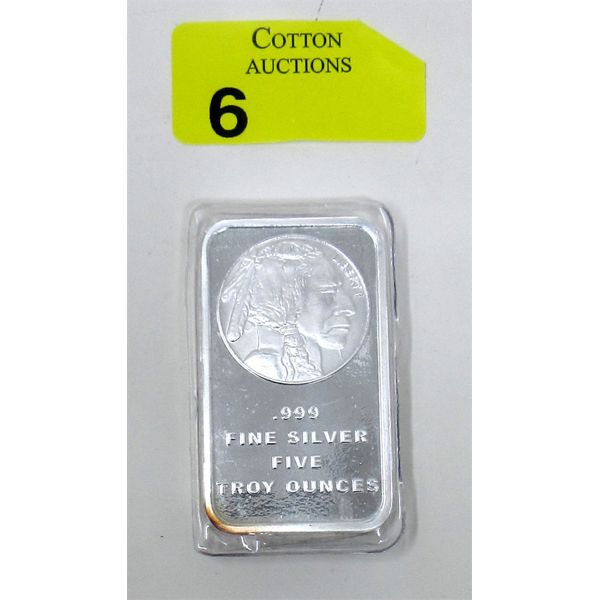 5 Oz .999 Silver Liberty Indigenous/Buffalo Bar