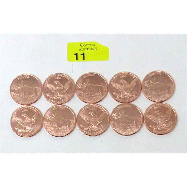 10 x 1 Oz .999 Fine Copper Moose Art Rounds