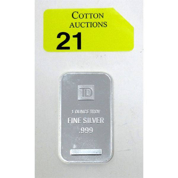 1 Oz .999 Silver TD Bank Investor Bar