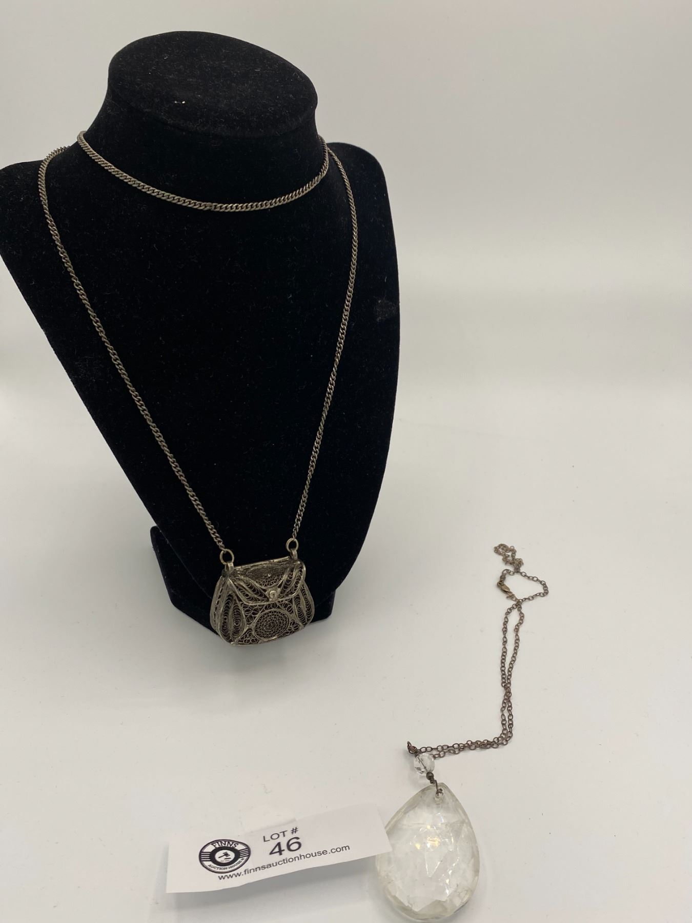 Crackle Glass Pendant, 925 Necklace and Silver Purse Necklace