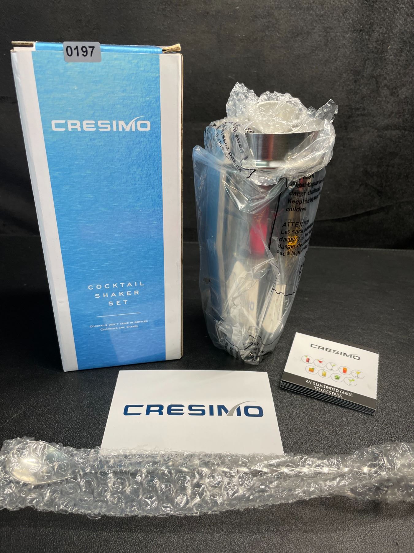 - cresimo 3pc cocktail shaker set - mixology bartender kit/stainless steel bar set with 24oz martini shaker, cocktail strainer, jigger, bar spoon & recipe guide - drink shaker for home cocktail set